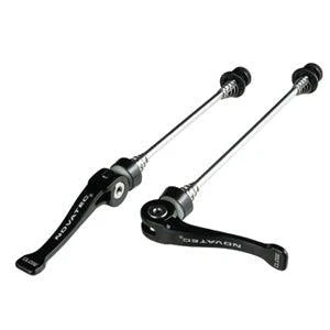 Novatech QR247-Ti Front and Rear skewers. Titanium shaft with 7075 alloy levers & ends and brass bushings.